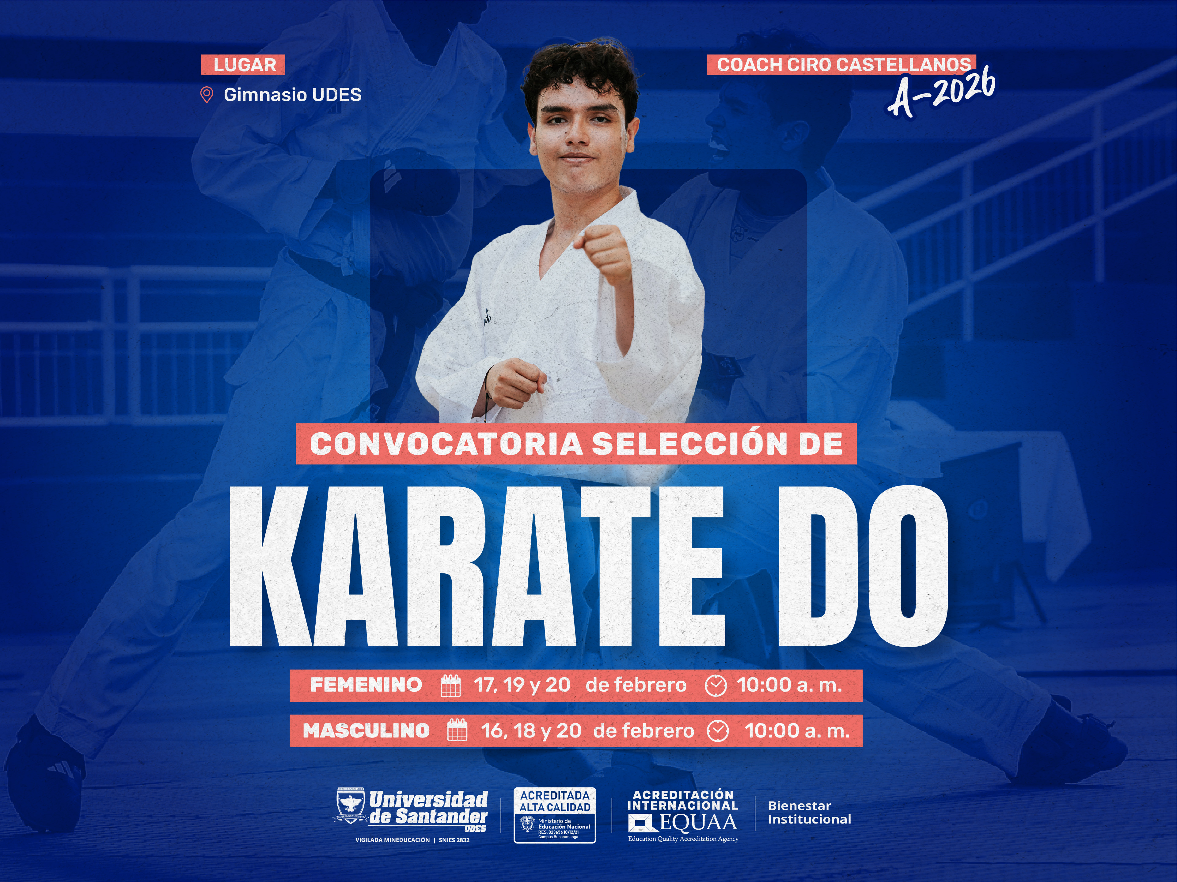 La Universidad de Santander (UDES), a través de Bienestar Institucional y con el Coach Ciro Castellanos, invita a los estudiantes a participar en la convocatoria para la Selección de "Karate Do" en el Gimnasio UDES.