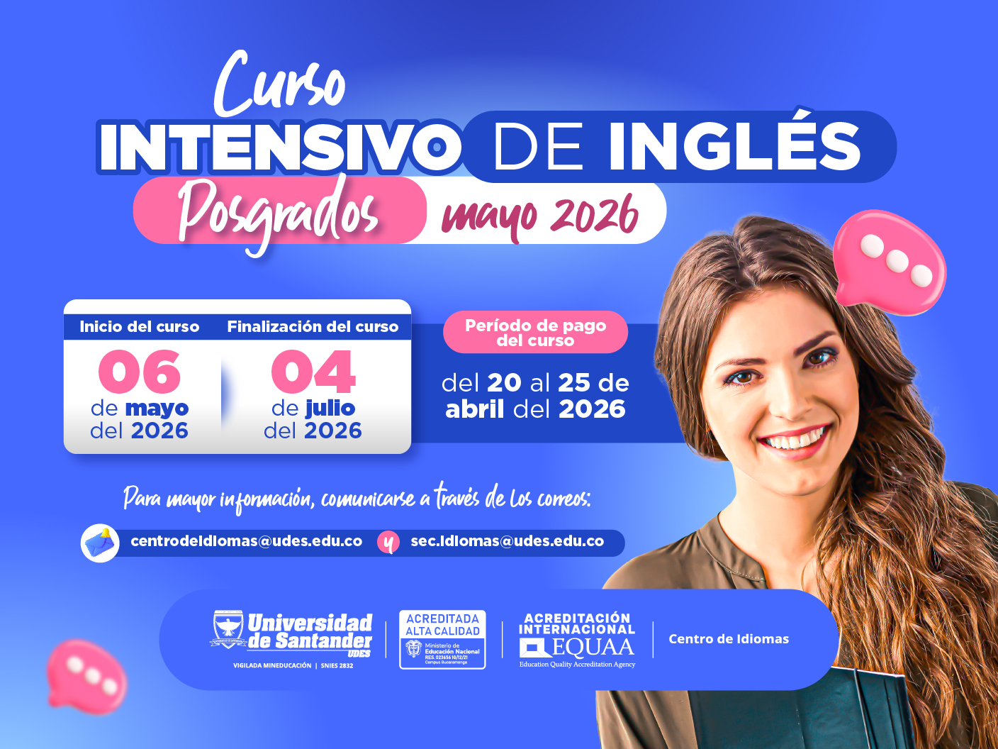 El Centro de Idiomas de la Universidad de Santander (UDES) te invita al "Curso Intensivo de Inglés" dirigido a estudiantes de posgrado.