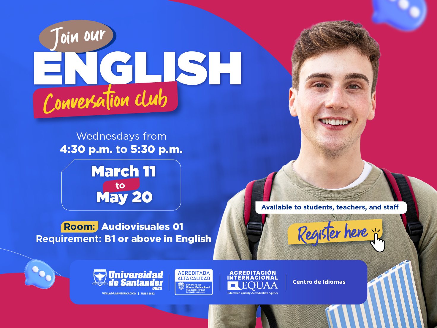 The Centro de Idiomas of the Universidad de Santander (UDES) invites you to join our "English Conversation Club".