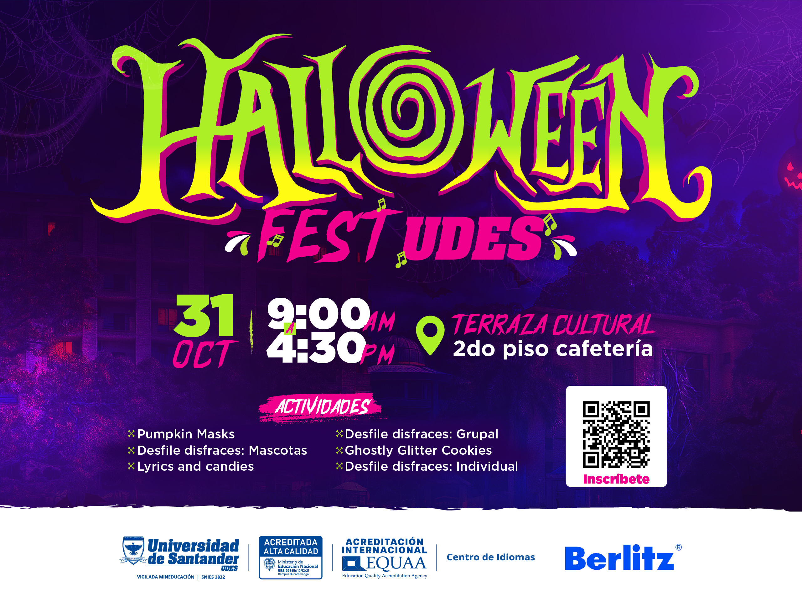 El Centro de Idiomas de la Universidad de Santander (UDES) te invita al "Halloween Fest UDES", un evento especial para disfrutar en comunidad.