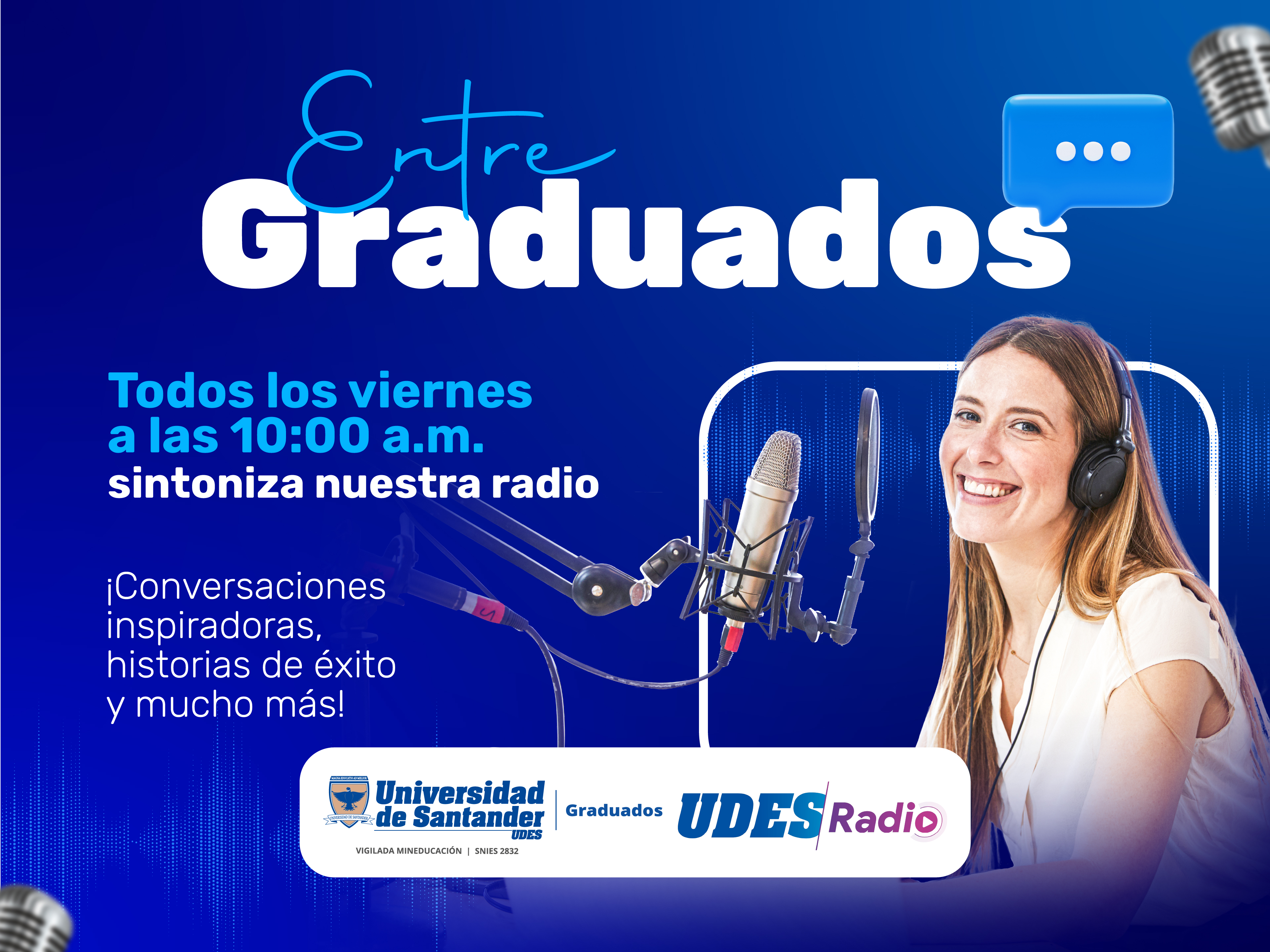 Graduados UDES: Todos los viernes a las 10:00 a.m. sintoniza UDES Radio para disfrutar de conversaciones inspiradoras, historias de éxito y mucho más.