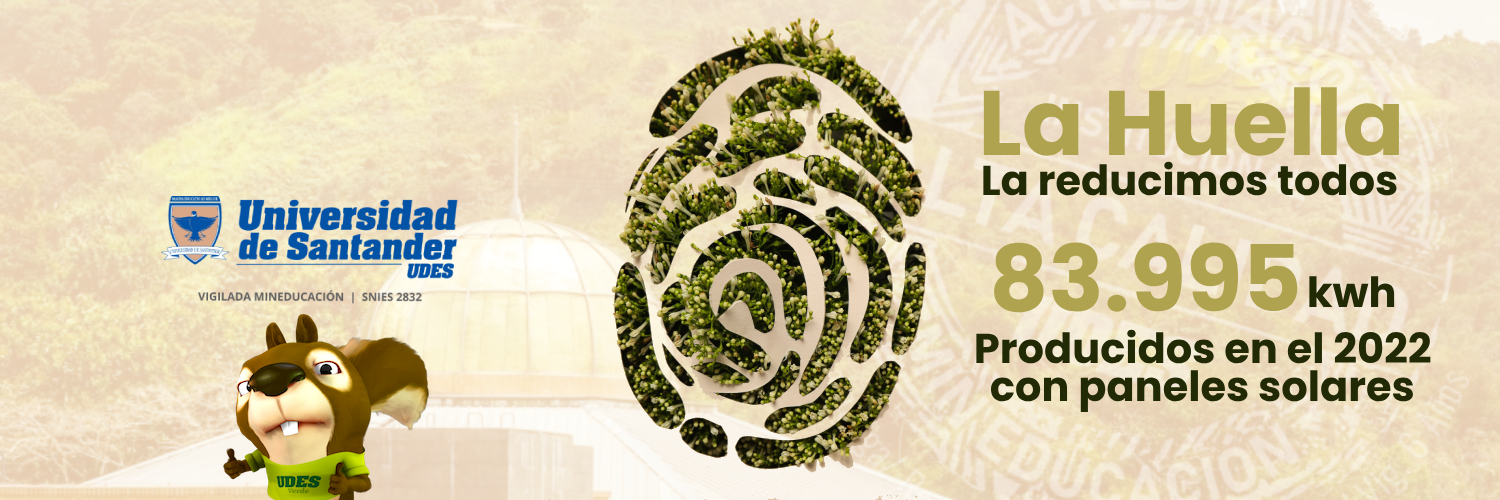 - La UDES cuenta con celdas solares fotovoltaicas en sus sedes, que generan energía limpia y renovable a partir de la radiación solar. Estas celdas reducen el consumo de energía convencional y las emisiones de gases de efecto invernadero.